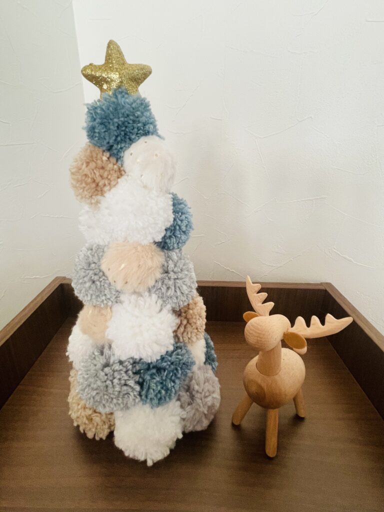 ポンポンツリーはテーブルや棚の上に飾るのに丁度よい大きさです。