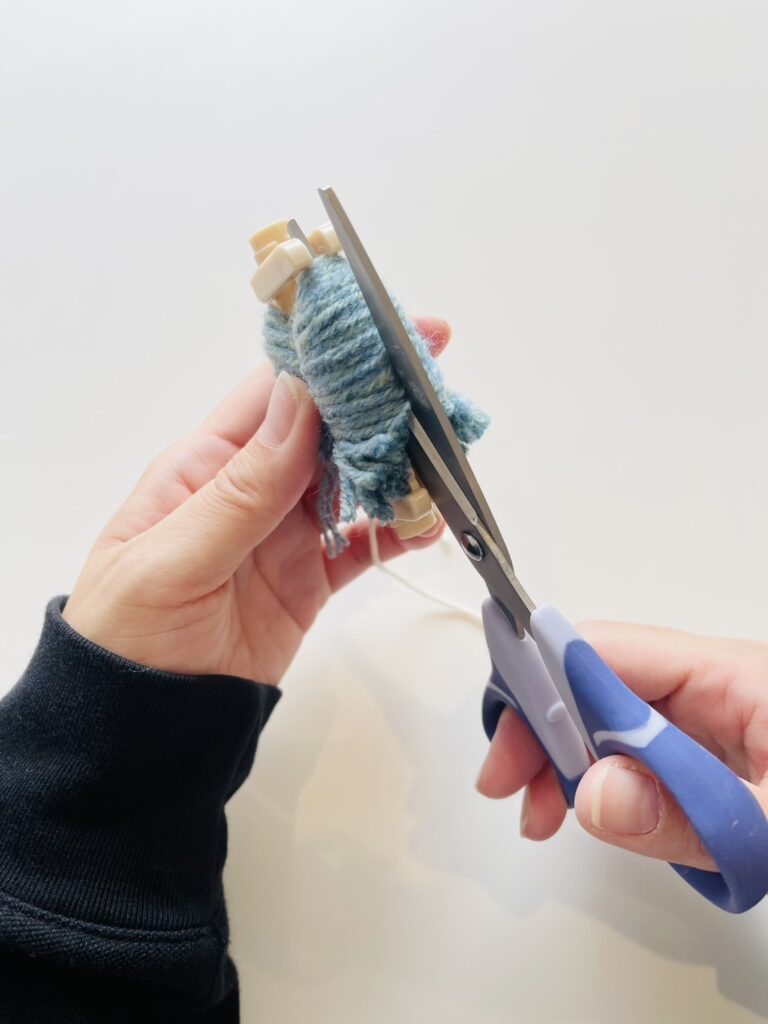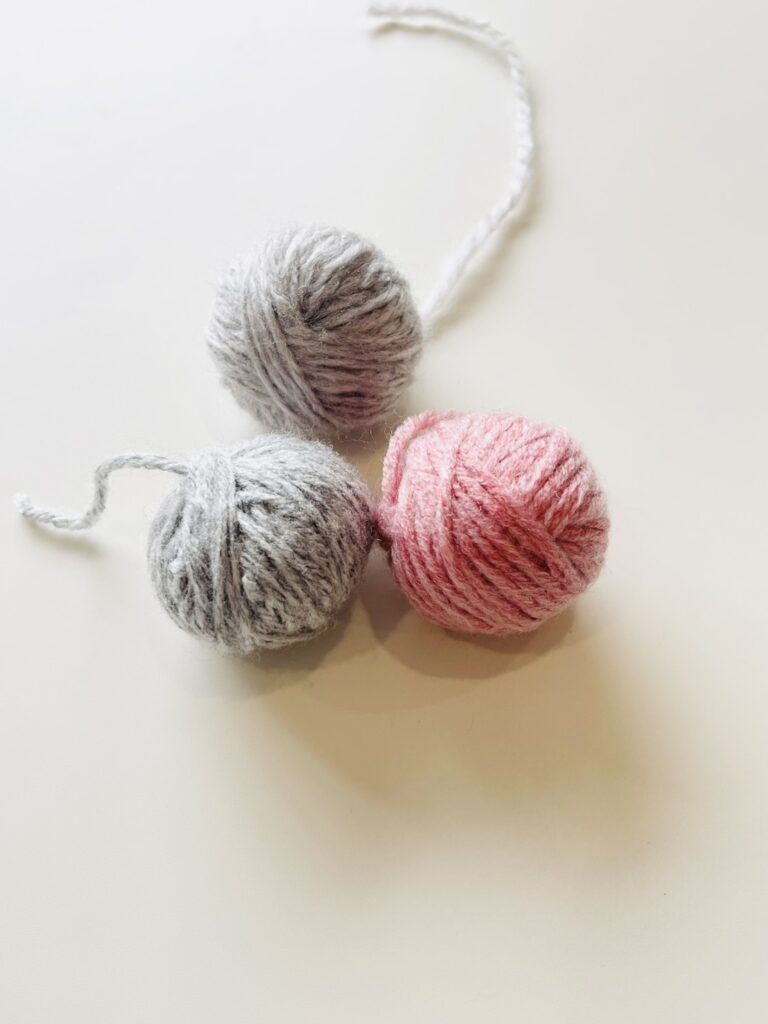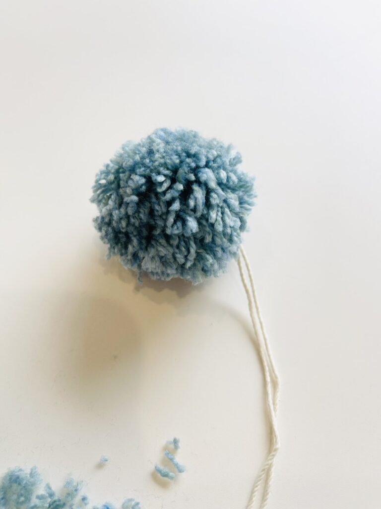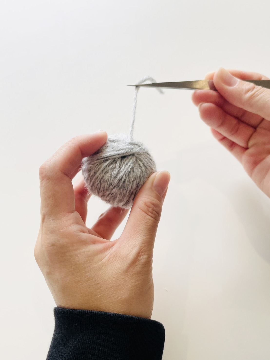 お団子を作るようにクルクルと毛糸をなじませて形を整えていきます。長い毛糸をカットしたり大きすぎたら小さくしたりします。