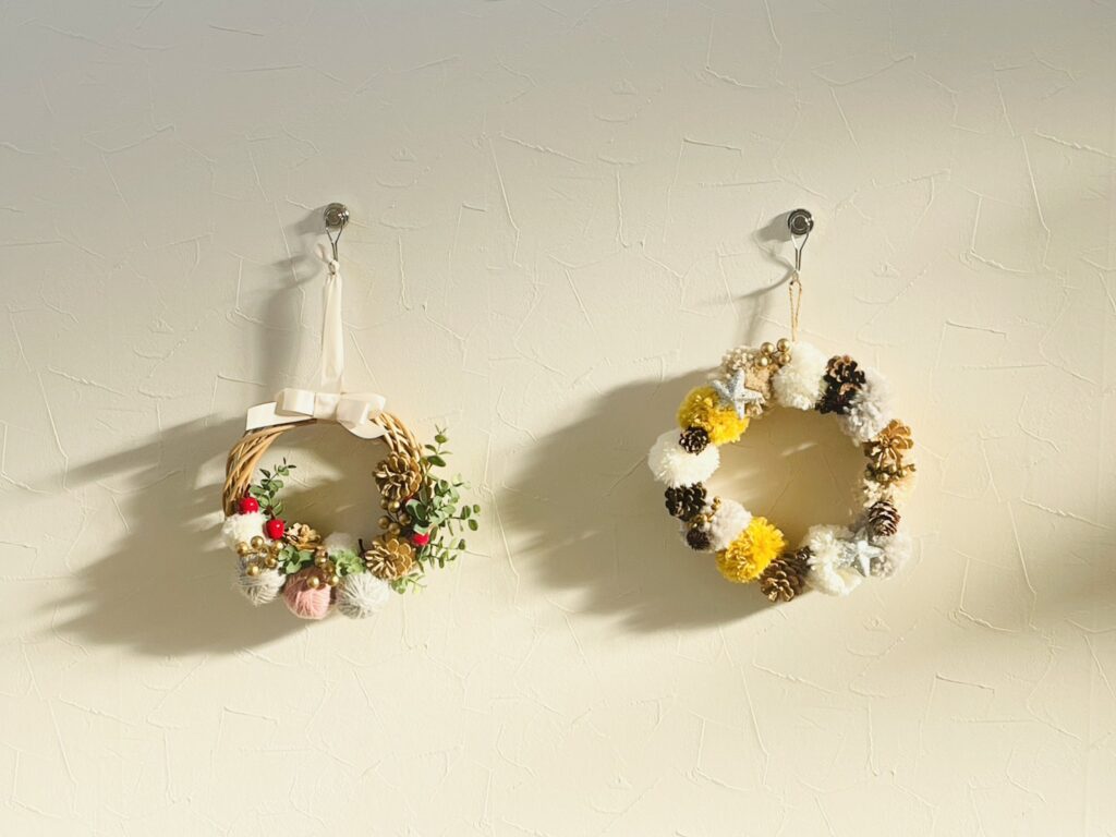 100円ショップで販売されているアイテムで作ったポンポンツリーとリースの作り方をご紹介します。