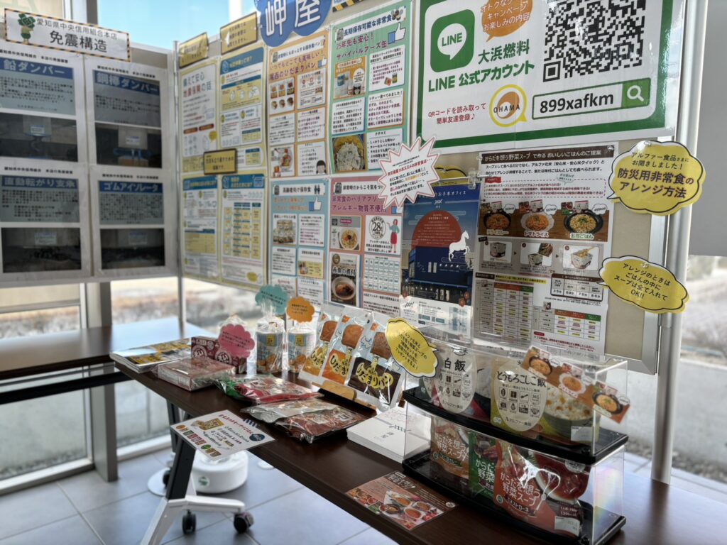 ・ビジネスセンター岬屋様による防災食の展示。