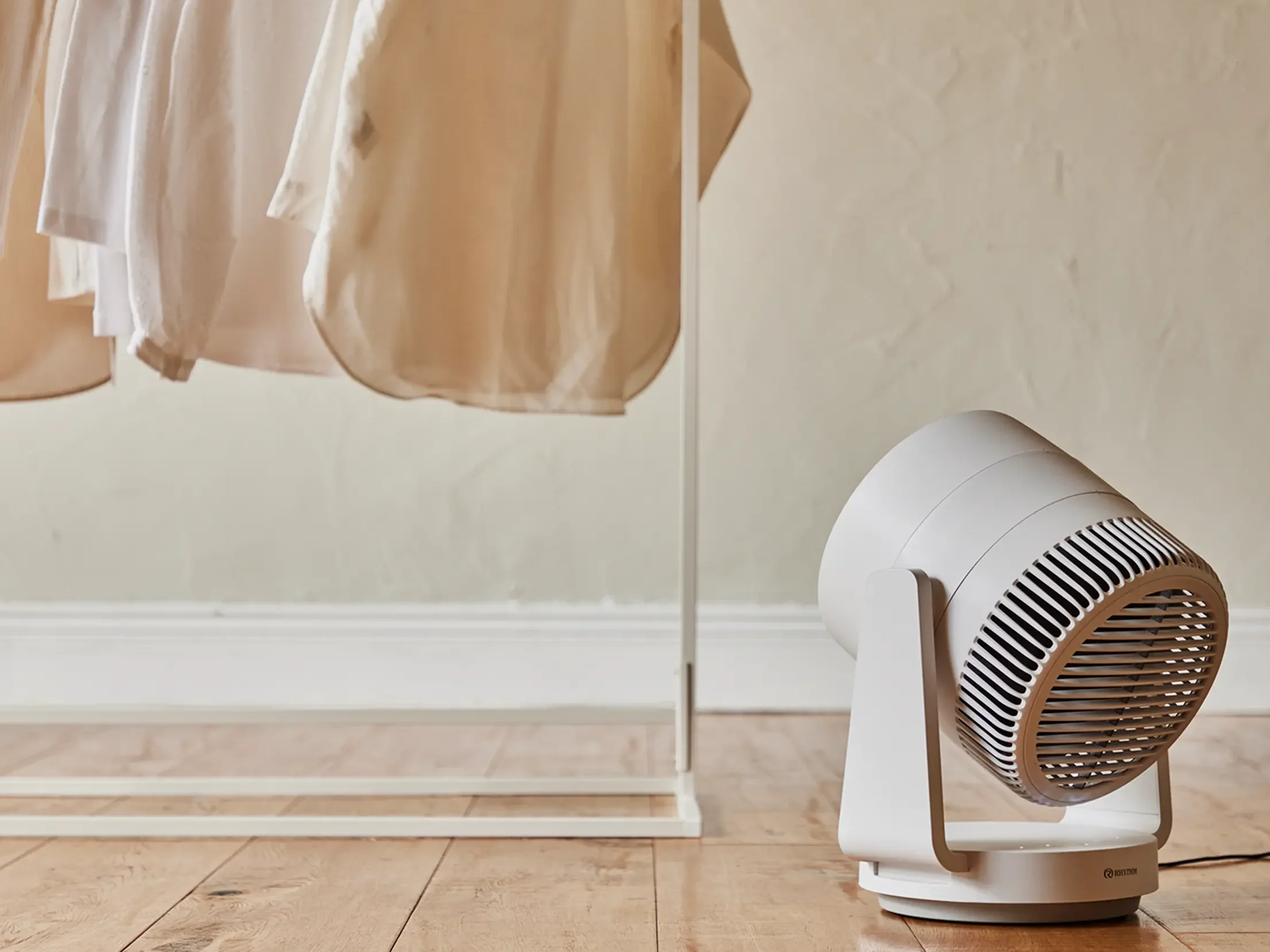 部屋にサーキュレーターを回し、洗濯物の下に風を通すだけで、