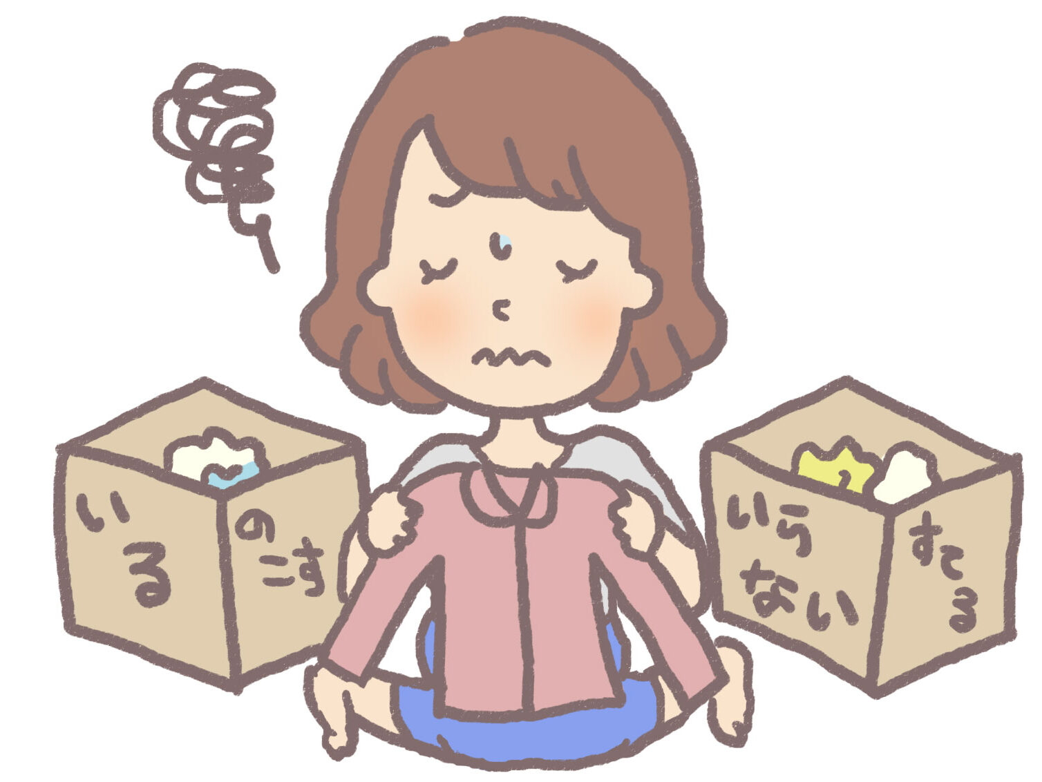 処分は「捨てる」「売る」「譲る」の3つに分けて箱に入れると、整理がとてもスムーズになります。