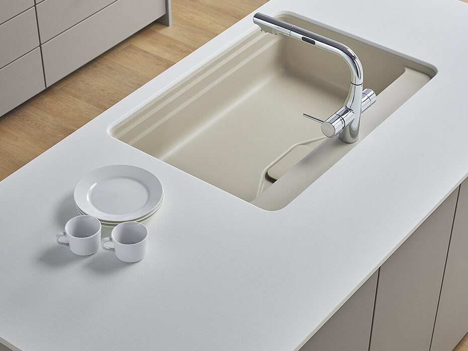 🧽汚れにくいカウンター素材で掃除時間を短縮