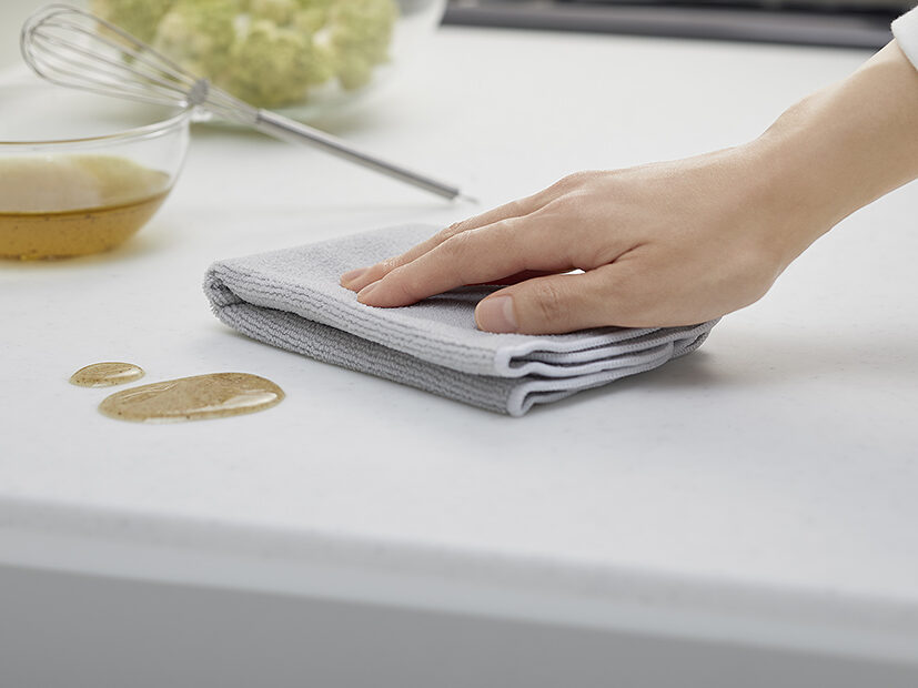 油はねや調味料の汚れが簡単に拭き取れる素材は、日常的にキッチンを清潔に保てます。